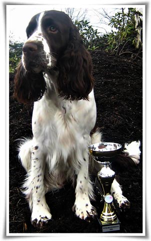 Noch ein Grund zu feiern: Ivy siegt in der Obedience Beginnerklasse Bei der heutigen Obedienceprüfung des HSV Fahrenkrug hatte Undis Tochter SS Dear Divony (Ivy) mit ihrer Führerin Tina Hagge ihr Obedienceprüfungs-Debüt. Sie erreichten unter dem LR Andreas Rieschick 276,5 Punkte damit ein "Vorzüglich" und die Qualifikation zum Start in der OI. Zu unserer großen Freude war dies die Höchstpunktzahl in der Beginnerklasse und Ivy hat damit direkt in ihrem Debüt ihre Klasse gewonnen. Weiter so, Tina!!! Und aus dem Ausland erreicht uns noch die Nachricht, dass... ...SS Crazy Blizz bei der Obedienceprüfung des dänischen Spanielklubben in der Klasse LP2 mit ihrer Führerin Sandra Klaus eine 1. Prämie (analog V) mit 201,5 von 230 Punkten errungen hat. Mit dieser schönen Arbeit errang das Team Platz 3. Glückwunsch!!! |