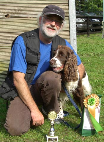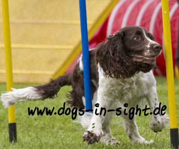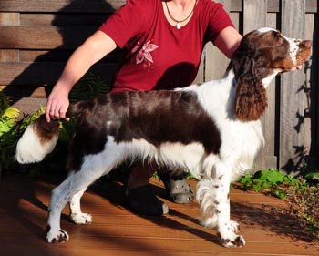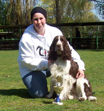 06.09.2010 völlig fassungslos: 2X BEST IN SHOW bei der SRA Neuwied Wir hatten einen supertollen Tag in Gesellschaft von Elena Stöhr (Kennel de los Tres Robles) mit ihrem Springer Show-team. Das Wetter war klasse, die Organisation der Schau nahezu perfekt und somit wurde der Tag dank den Ergebnissen zu einem den man nie vergisst. Ich war zum ersten Mal mit Cinco im Ring. Noch einmal Jüngstenklasse und er präsentierte sich so hervorragend, dass er vielversprechend 1 erhielt mit folgendem Bericht: Für sein Alter schon sehr weit entwickelter Rüde, vorzüglicher maskuliner Kopf, dunkles Auge, bester Ausdruck, harmonisch aufgebaut, sehr seidiges und glattes Haar, noch schlichte Befahnung, kräftige Läufe, schwungvolle fast federnde Bewegung, sicheres und ausgeglichenes Verhalten. Später war dann Amber im Ring der Zwischenklasse Hündinnen und gewann diese mit V1 und VDH- Anwartschaft. Später fanden die Endkonkurrenzen statt und Cinco wurde in einer Konkurrenz von vier mit vv1 bewerteten Spaniel-Babies Best in Show!! Supertoll mein kleiner Mann! Danach kamen die Endkonkurrenzen für die erwachsenen Spaniels und Natalie machte mit Amber das Unmögliche möglich. Gegen die wunderschönen Springermädchen aus Spanien bekam sie das Club-CAC, wurde beste Hündin (hier setzte zum ersten Mal meine Atmung aus) gegen den besten Rüden wurde sie BOB (Rassebeste)!! Und zu den üblichen Klängen von Queen "we are the Champions" war sie für die Richterin Frau Junge der beste Hund der Schau (BIS). Niemals hätten wir das für möglich gehalten. Go Amber Go! :-) Fotos von R. Kohl HIER SS Bouncing Matisse Platz2 in A2 in der Schweiz Matisse und Ulrike Simon liefen in Basel mal wieder fehlerfrei im Prüfungslauf A2 kamen auf Rang 2 von fünf fehlerfreien Teams und haben damit eine Qualifikation zum Aufstieg in A3 errungen. |