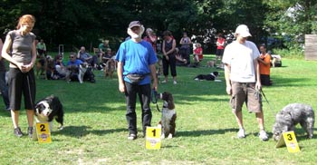 17.07.2010 Amber- auf dem Weg zum neuen Titel Bei der heutigen Spezialrasseausstellung der "AG andere Spanielrassen" des Jagdspanielklubs erreichte SS Energía (Amber- Foto rechts) den Sieg in der Zwischenklasse Hündinnen mit VDH CAC, wurde später bei den Endkonkurrenzen beste Hündin und bekam auch das Klub CAC. SS Firefox (Pommes) wurde in der Jugenklasse Rüden vorgestellt und bekam V1 mit Jugend CAC, seine Schwester SS Flirty Flake bekam ebenfalls ein Vorzüglich allerdings war sie in der Hündinnen Jugend drittplatziert. Ringimpressionen aus Krefeld von Susanne Menten Hier. Einen Glückwunsch den erfolgreichen Ausstellern Natalie Bökenkamp, Jürgen Koppenberg und Andrea Ossenkemper |