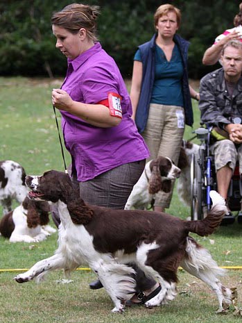 01.08.2010 There´s no business like showbusiness!!! AMBER BEST OF BREED in Bremen Am Samstag bei der internationalen Rasseausstellung in Bremen reichte es für SS Energía (Amber) und Natalie Bökenkamp für das V2 mit Res VDH CAC. Am Sonntag dann bei der Nationalen war eine andere Richterin für die English Springer Spaniel zuständig. Fr. Poduschka-Aigner aus Österreich sah Amber vorne, gab ihr V1 mit VDH CAC in der Zwischenklasse, später das CAC und noch später ;-) das "Best of Breed" = Rassebester English Springer des Tages. Das Foto rechts entstand am Samstag und ist wieder von Frau Susanne Menten (ein herzliches Dankeschön dafür!!!). Weitere Fotos von Frau Menten -Kennel Felicitous- HIER. |