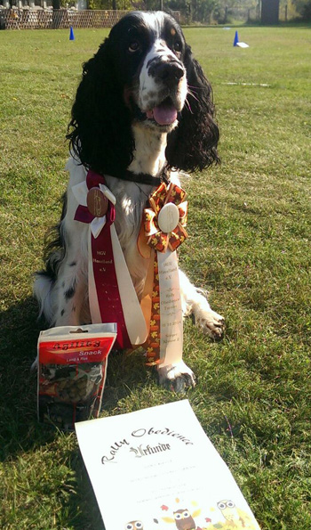 22.10.2014 In der Zwischenzeit .... Sporty Springers Firebird (Falk) war am 21.09. mit Katja Müller beim Turnier beim Hundesport Lich erfolgreich mit einem 2. Platz im A-Lauf und einem dritten Platz im Jumping2. Bei der Kreismeisterschaft in Marburg am 04.10. gewann das Team sogar den Jumping 2- bewertet hat dort Dirk Schambeck. Sporty Springers Kickstart (Miles) wurde von Monika Morlak bei der Bundessieger Ausstellung in Dortmund gezeigt und erhielt das V2 mit den Res. J CACs. Ausserdem ist für Miles auch das offizielle HD Ergebnis gekommen- A1 -ganz die Mama ;-) Sporty Springers Kiss of Life (Django) hat in der Schweiz ebenfalls bereits ein offizielles HD Ergebnis mit A/A ist auch er frei von HD die ED wurde ebenfalls untersucht, auch hier ist er frei (0/0) Sporty Springers Houdinis Lightning (Houdini- Foto rechts) und Sandra Kreibich platzierten sich in der Rally-Obedience Klasse 2 am 05.10. beim HGV Havelland e.V. mit 90 Punkten Vorzüglich (Aufstiegsquali) mit diesem Ergebnis gewannen sie die Klasse. LR Conny Hupka hat bewertet. Sporty Springers Golddust (Eddie) und Susanne Sontowski erarbeiteten sich am 19.10. beim AHC Beckum ebenfalls eine Vorzügliche Wertnote in der Obedience Klasse I mit 234 Punkten und Platz 2 unter dem LR R. Bartlang. Sporty Springers Fireworx by Laurin (Laurin) und Birgit Funk starteten am 18.10 bei der Obedienceprüfung in Kückhoven, erreichten unter LR R. Sydow 236,5 Punkte (SG) und den zweiten Platz in OIII Sporty Springers Jester`s Cap (Capper) mischt nun auch in der Königsklasse OIII mit. Ebenfalls in Kückhoven jedoch am 19.10. erarbeitete er sich zusammen mit Birgit Funk 237,5 Punkte (SG) und den dritten Platz.