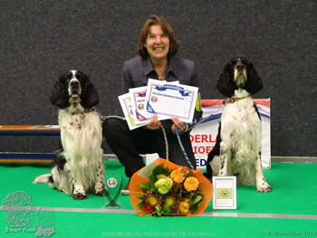 05.11.2017 UK-Obedience Meisterschaften in NL Birgit Funk krönte ihr Sportjahr mit diversen Platzierungen bei den gestrigen Meisterschaften. In Klasse A kam Capper auf Platz 4 und erhielt noch den Preis für den "most promising dog" und Laurin auf 5. In Novice erreichte Laurin sogar einen 2. Platz. Auch mal BgH Cinco und ich waren gestern beim HSV Bad Salzuflen zu Gast und legten dort die BgH 1 ab. Ich freue mich auf die spannenderen Aufgaben in Klasse 2 und 3 ab dem nächsten Jahr.