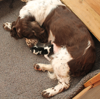 20.05.2017 Q im Blick Gestern Nachmittag hatten wir einen Tierarzttermin der unsere Beobachtungen bestätigte. Mittels Palpation wurde eine Reihe kleiner Q-ueridos gefunden. Wenn weiter alles gut geht kommen rund um den 21.06. "deutlich mehr als fünf" kleine Sally-Miles-Springerchen bei uns an. Wir freuen uns sehr und sind gespannt! |