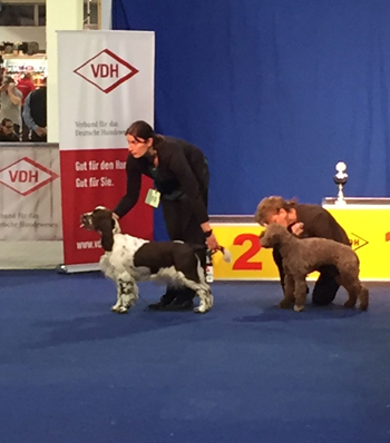 27.11.2017 Großbesetzung in Iserlohn Bei der gestrigen SRA Iserlohn waren wir mit 7 Springern im Katalog. Die Babyklasse war ein Geschwisterduell: SS Qaramba vv1 und BIS Baby, SS Quickstep in Black vv1, SS Qall Me Akino vv2. Mein P-Wurf wurde in der Jüngstenklasse gezeigt: SS Pitufo erhielt vv1. Lara Platz 1 BOB-Veteran, Alma V2 mit VDH Res CAC, Skadi V1 mit VDH CAC und Klub CAC Res. HD A2 beim Pfälzer Buben Das HD Ergebnis von SS Ol´Man River (Pelle) ist zurück und lautet wie bei seiner Schwester A2.