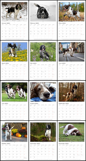 29.11.2020 Advent, Advent Auch für 2021 gibt es wieder den zwölfseitigen Forums-Kalender im DIN A4 Format. Jede Seite ziert ein Springer Spaniel Foto und eine Monatsübersicht. |