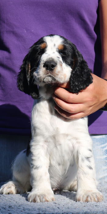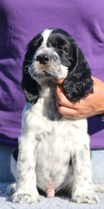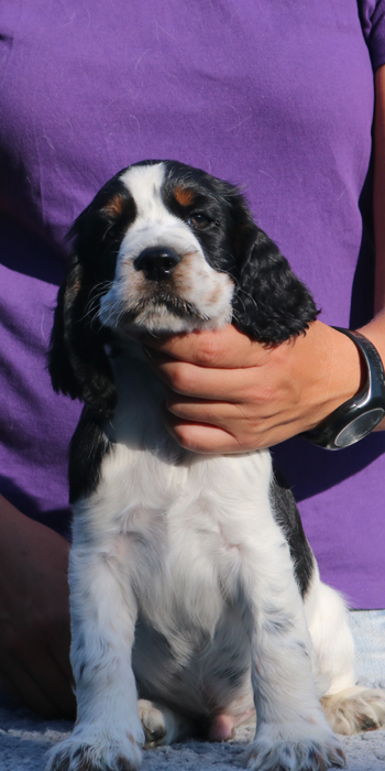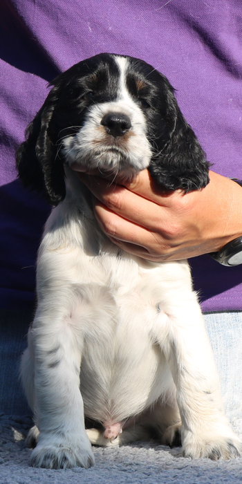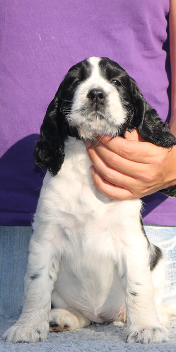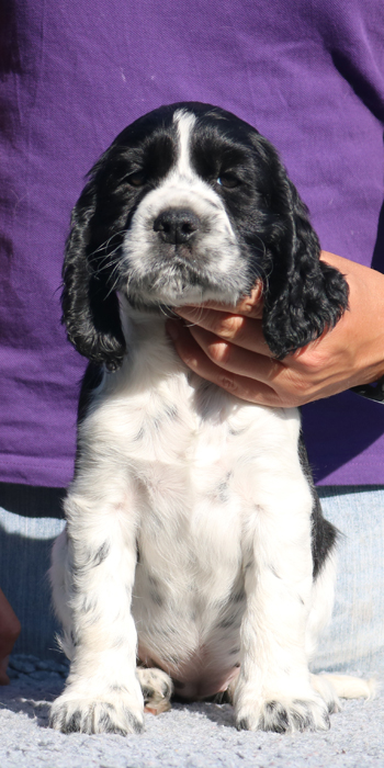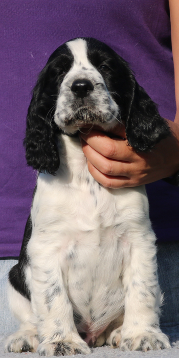 Da er aus einer Verpaarung zweier schwarz-weißer Springer kommt ist es möglich, dass er reinerbig für die schwarz-weiße Fellfarbe ist.