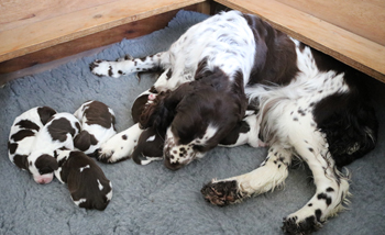 Die Wahl fiel auf Captain, er ist der einzige zuchttaugliche Springer, der in der drei Generationen Ahnentafel noch die Wurzeln von Sporty Springers aufgeführt hat.