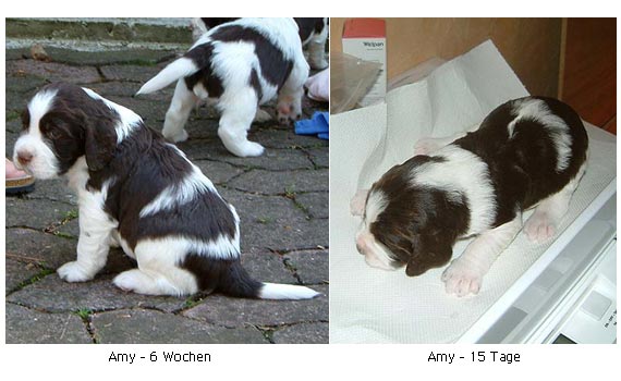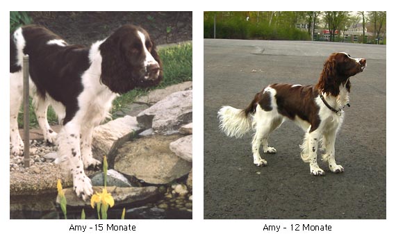 SPORTY SPRINGERS AGILITY QUEEN AMY Ich bin Amy. Nach vielen Umzügen bin ich endlich in meiner Familie angekommen. Meine Familie sind Dana, Sascha und Luise, ein Labrador den ich super schmusen kann und deshalb habe ich sie zu meiner neuen Mama gemacht - ob sie will oder nicht. Ich habe mich schon toll eingelebt seit dem 23.04.2004 und klaue meinen neuen Leuten nicht mehr den letzten Nerv, sondern gebe mich schon mit der Hälfte ihrer Nerven zufrieden. Ich