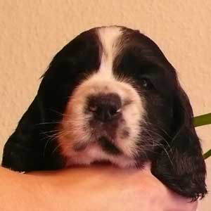 Vier Tage ohne Eintrag bedeuten diesmal nicht, dass von Katastrophen zu berichten ist. Zur Beruhigung aller: die Welpen sind weiterhin quietschfidel aber die Züchterin ging in der vergangenen Woche auf dem Zahnfleisch. Arbeit (auch wenn es nur Teilzeit ist), vier erwachsene Springer, die Babies, der Haushalt und Welpeninteressenten haben mich ganz schön auf Trab gehalten. An dieser Stelle einen Dank an meine zweibeinigen Helfer, ab jetzt habe ICH anstatt 18- 24 Stunden Welpendienst! Obwohl, derzeit sind 24 Stunden eine grobe Übertreibung mindestens 20 der 24 Stunden verschlafen die C-chen noch. Die Wachphasen sind zwar schon deutlich länger als in der Vegetativen- und Übergangsphase, und auch schon mit viel mehr Geschehen gefüllt, aber trotzdem verschlafen die Babies noch den größten Teil des Tages. Zum Geschehen in Wurfkiste und Auslauf: Hündin 7 und Rüde 3 konnte ich jeweils schon beim Spiel mit dem Ziehknoten beobachten, ansonsten spielen die C-chen sehr interessante Spiele miteinander. Sie üben sich in hundlicher Kommunikation, mit allem was dazu gehört, Kläffen, Knurren, Jaulen, Winseln (derzeit noch in einem erträglichen Rahmen) und Körpersprache d.h. Wedeln, Pföteln, Schnauzenstoß, Rute aufstellen, Imponieren, Beschwichtigen etc. Das Laufen selbst auf den Fliesen klappt bei allen schon recht gut, aber die Babies nutzen bisher noch nicht den gesamten Auslauf, sondern zum größten Teil nur den Quadratmeter direkt vor der Wurfkiste. Das wird sich sicherlich im Laufe der nächsten Woche ändern, der ein oder andere klopft ja auch schon an die Auslauftür. Ein Beweisfoto dafür gibt es in der zweiten C-chen Galerie von Herrn Höfling. Die dort gezeigten Fotos sind vom gestrigen Besuch von Penny und ihren Zweibeinern bei uns. Penny war gestern nicht der einzige Springerbesuch bei den Babies. Auch Barnie (der Vater der Welpen) und seine Besitzer warfen einen zufriedenen Blick auf den Nachwuchs. |