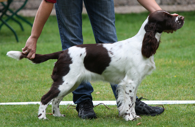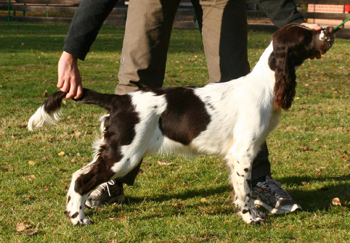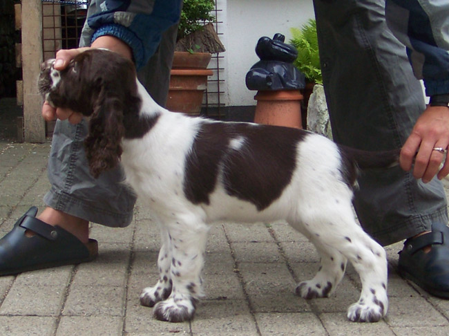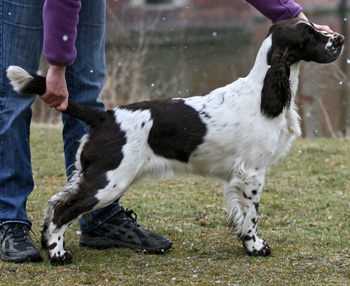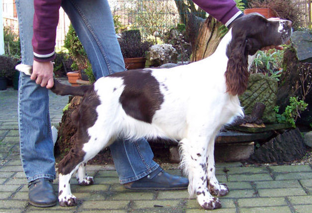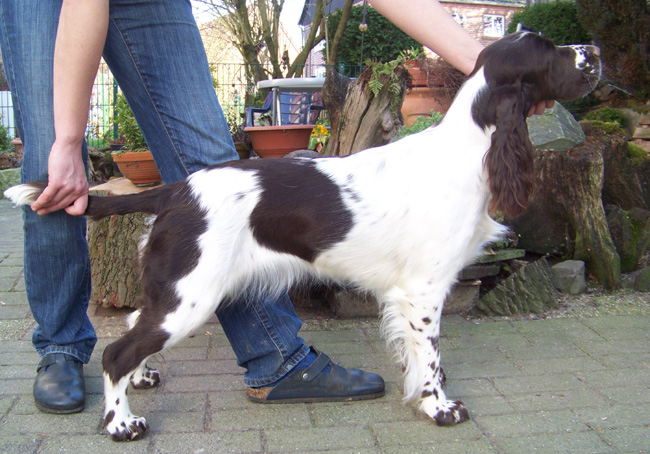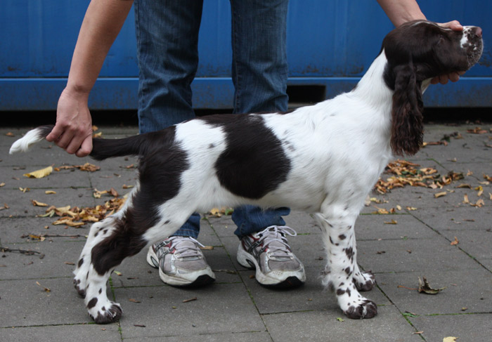 Dt. Jugend Champion (Klub) Sporty Springers Honour & Fame (Fame) Geb.dat.:01.05.2011 HD: B1 Augen: frei Februar 13 ZTB: uneingeschränkt zuchttauglich, Größe: 51 cm BH: bestanden am 11.08.12 Einen Einblick in Fames Training mit fast 11 Monaten gibt es HIER Mein "Arbeiterkind" geboren am 1. Mai die einzige Hündin in einem Geschwisterrudel von 8 und dann auch noch braun weiß. Am Tag ihrer Geburt war bereits klar, dass sie bleiben wird, komme was da wolle. Nach jetzt fast elf Monaten mit Fame kann ich sagen, sie ist alles was ich mir erträumte aus dieser Verpaarung, und sogar noch ein gutes Stück mehr. Sie hat eine Portion Sternenstaub ihrer Uroma Nova abbekommen und ist einfach nur blitzgescheit, wissbegierig, nervenstark, reaktionsschnell und enthusiastisch. Fame ist ein Energiebündel, das sich erstaunlich gut kontrollieren kann. Sie ist mein Traum von einem Sporthund, der sich trotz leichterem Körperbau im Ausstellungs-Ring -zumindest in der Jugendklasse ;-) bisher- nicht verstecken muss. Meine Ziele mit ihr sind hoch gesteckt und sie ist auf einem guten Wege. Ihre Omas lieben sie und lassen ihr so manche Flausen durchgehen, ebenso Cinco. Fame ist hier im vierbeinigen Rudel das verwöhnte Nesthäkchen, das sich fast alles erlauben darf.