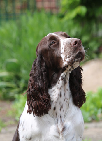 Frauchen Tina hat im Anschluss mit mir die Grundbegriffe der Dummyarbeit gelernt und Flusi bekam dann, statt regelmässigem Gruppentraining, Dummysuchen in den täglichen Spaziergang eingebaut. Im Tausch gegen den geliebten Ball werden Dummys auch artig abgeliefert.