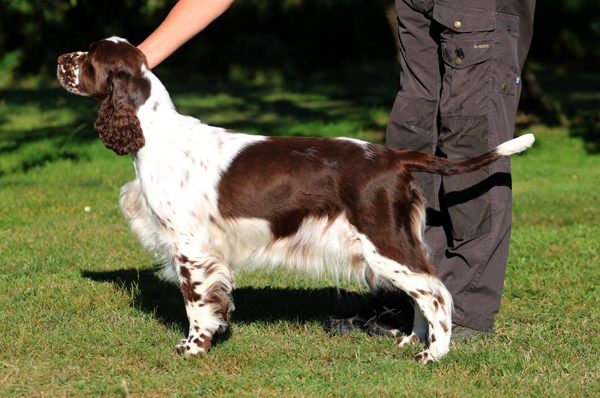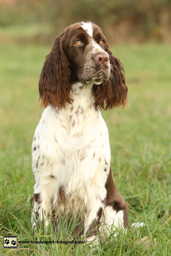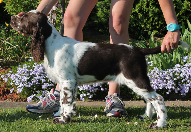 Skadi übertrifft meine Erwartungen bei weitem, jetzt im Alter von sechs Monaten ist sie sehr reif, sehr fleissig, sehr ballverliebt, gehorsam und verschmust obendrein. Sie ist ein hübsches kleines Springermädchen, das bisher sehr harmonisch gewachsen ist, mit auffälliger Knochenstärke, Substanz und Tiefe.