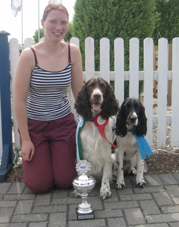 26.03.07 Großartige Obediencenews aus Frankfurt! Am vergangenen Samstag startete Michaela Peschk mit ihren beiden Englisch Springer Spaniel Rüden "Donatello vom Leiningerland" und "Henry" bei der Obedience Prüfung des SSGH Frankfurt Bockenheim unter dem Leistungsrichter Ton Hoffmann (NL) in der Klasse OII. Mit Henry erreichte Michaela ein Traumergebnis von 265 Punkten "Vorzüglich" den ersten Platz in OII und damit Qualifikation für OIII!!!!!!! Don leistete sich leider drei Nullrunden, die hohen Punktzahlen der anderen Übungen sicherten ihm aber mit 224,5 Punkten noch ein "Sehr Gutes" Ergebnis. Diese Punktzahlen ermöglichen Michaela mit beiden Hunden den Start bei der Landesmeisterschaft- Wir gratulieren und drücken ganz fest alle Daumen! Don und Henry haben dadurch in der Obediencerangliste die Plätze getauscht. |