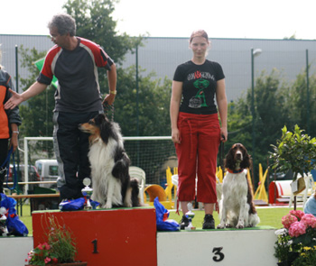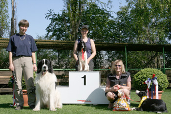 21.06.07 SS Anubis zweimal auf dem Treppchen! Am vergangenen Samstag überzeugte Anubis anlässlich des Agilityturniers in Unna Königsborn ein weiteres Mal durch seine Geschwindigkeit im Parcours. Trotz je einem Fehler in den Disziplinen A2 und J2 erreichte er jeweils einen dritten Platz. Einige Mitstreiter kamen zwar fehlerfrei ins Ziel, hatten aber Zeitfehler zu verzeichnen, denn die amtierende Leistungsrichterin C.Bremer verlangte eine hohe Grundgeschwindigkeit. Anubis und Ines Laufzeit von 3,98 m/sec zeigt, dass die Parcourse auch technisch hochanspruchsvoll waren. Jubiläumsklubschau Alsfeld: Der Jagdspanielklub feierte 100 jährigen Geburtstag und wir durften natürlich bei der dazugehörigen Klubschau in Alsfeld am 17.06. nicht fehlen. Es war ein Tag voller Aktivitäten und Diskussionen. Unser Auftritt im Ring geriet zur Nebensache. Undis erhielt von der amtierenden Zuchtrichterin Frau T. Schmid aus der Schweiz ihr erstes SG jedoch in einer Klasse von sechs Hündinnen wenigstens noch platziert. Nachträglich gratulieren wir noch: Michaela Peschk mit Henry zu ihrem vorzüglichen Obedienceergebnis bei der Landesmeisterschaft am 02.06.07. Mit 262 Punkten erreichte dieses Team einen sechsten Platz in der Klasse OII. Wir sind sehr gespannt auf Henrys Debut in Klasse OIII! Auch mit Donatello vom Leiningerland startete Michaela bei dieser Prüfung- durch zwei Mißgeschicke reichte es hier leider nur für ein G 214,5 Punkte und den zehnten Platz der Klasse OII Die Obediencerangliste hat sich verändert.