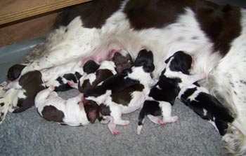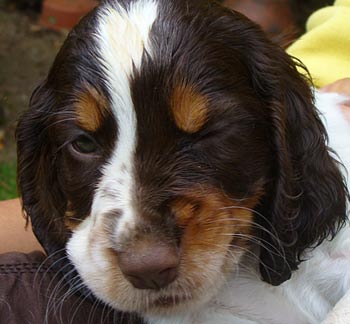 25.05.09 Vom Welpen zum Hund: Mocca 6,5 Monate alt Meine E-spañas sind deutlich auf dem Weg zum Erwachsenwerden wie das aktuelle Foto rechts von "Mocca" (SS Elegida) aus Dänemark zeigt. Es lacht das Züchterherz wenn die Visionen die man vor einer Verpaarung hat, sich im Endeffekt bewahrheiten. Für jeden Wurf gibt es jetzt eine neue Seite mit aktuelleren Bildern. Die E-spaña-Bilderseite findet sich hier. |