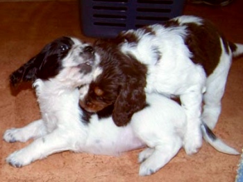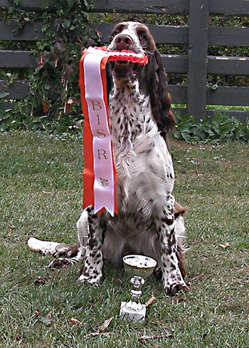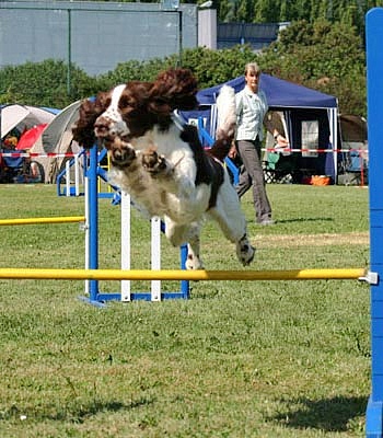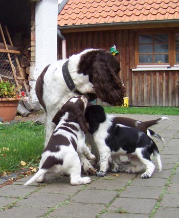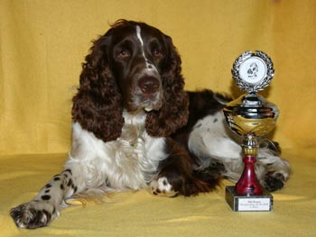 28.09.09 Happy Birthday C-chen! Der C-Wurf ist zwei Jahre alt! Springertreffen in Dänemark *Schluchz*! Bereits am Samstag traten Heinz Höfling und seine Coffee (SS Coffee ´N Cream) und Sandra Klaus und ihre Crazy (SS Crazy Blizz) In Dänemark zu einer Obedienceprüfung ausgerichtet vom dortigen Spanielklub an. Sandra erreichte mit Crazy den zweiten Platz in LP1 mit 1.Prämie (Vorzüglich) als bester Spaniel der Klasse, auch Gil schlug sich gut und konnte in LP2 ein vorzüglich mit nach Hause nehmen. Coffee und Heinz debutierten im Obediencering und kamen nicht in die Preise, trotzdem gab es gute Kritiken. Neben der Obedienceprüfung gab es am Veranstaltungsort auch eine inoffizielle Ausstellung bei der Mocca (SS Elegida- Foto rechts) die Jugendklassen gewann und 5 bester Hund der Schau wurde. Am Sonntag: Agility in Ahlen SS Anubis konnte mal wieder im Agility zeigen was er kann und gewann beim Turnier in Ahlen den Jumping 3 fehlerfrei mit einer Laufgeschwindigkeit von 4,54m/sec. Glückwunsch an seine Führerin Ines Hofeditz |