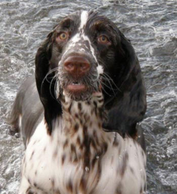 29.06.09 Kiwis Agilityturnierdebut: Sieg im Jumping Zwei Wochen nach der bestandenen Begleithundeprüfung stürzte sich Ralf Scheuermann mit seiner SS Cashmere Kiwi direkt ins Agilityturniergetümmel und das sehr erfolgreich. Mit den Worten des stolzen Hundeführers: "Am Samstag ist der Sporty Springer Nachwuchs zur Konkurrenz der schon so erfolgreichen Springerfamilie geworden. Meine kleine süße Kiwi gewinnt den Jumping Beginner beim SV KASSEL OST mit guten 4,43m/s. Vom A-Lauf können wir leider nur ein DIS vermelden da Herrchen den Parcour nicht richtig gelesen hat. Ich bin superstolz auf meine kleine Maus." Herzlichen Glückwunsch an Ralf und Kiwi! Auf dem Foto rechts ist ein weiteres "Debut" im Bild festgehalten: Moccas erste Schwimmversuche. SS Elegida macht ihr Seepferdchen in der dänischen Ostsee. Das Foto ist von ihrem Frauchen Anne Hosbond. |