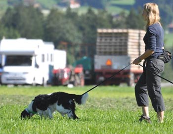 25.10.09 Erster!...D-äumling mit BH Im Mindestalter zur Begleithundprüfung legte Gestern SS Dallas Desperado (Foto rechts) die Begleithundprüfung beim HSV Springe ab. Klitzekleine Patzer darf man sich durchaus leisten und das Gesamtbild war sehr nett, sodass seine Besitzerin Heidi Krüper Dallas jetzt auf die Obediencesaison 2010 vorbereiten kann. Glückwunsch, Heidi! Ein weiterer Springer-Dog (also auch aus dem HSV Springe) war Gestern erfolgreich: Beim Agilityturnier in Schwalmstedt erlief sich SS Cashmere Kiwi gemeinsam mit Herrchen Ralf Scheuermann mit zwei Fehlern einen dritten Platz im Prüfungslauf. Auch diesem Team meine Gratulation! |