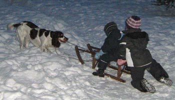 08.01.2011 Schlittenhund mal anders SS Fairy Tale (Lotta) betätigt sich ungeachtet des Heute angekommenen HD-Ergebnisses als Zughund. Ein weiteres C1 in der F-röschchen Auswertung. Na, 2011 hätte in meinen Augen besser beginnen können. Aber gerade das zeigt mir wieder wie wichtig es ist einen hohen Prozentsatz der Nachzucht röntgen zu lassen. Hätten wir nur die Ergebnisse der Hunde gehabt, die in der Zucht gebraucht werden sollen, hätten wir mit B1 und B2 ein anderes Bild gehabt. |