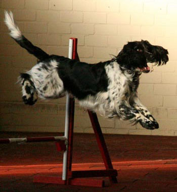 27.03.2011 Springer, die (fast) Alleskönner Heute hat SS Elegida (Mocca) in Dänemark die Beginnerklasse der sogenannten Markproeve (Jagdprüfung) mit 2. Prämie (sehr gut) bestanden. Bei schönstem sonnigen Wetter starteten Mocca und ihre Besitzerin Anne Hosbond in Jullund unter dem Leistungsrichter Steen Lund. Mit Mocca ist im Spätsommer ein Wurf geplant nach Astrosprings Monoceros im Kennel Happy Leans. Und selbst die ganz Kleinen machten von sich reden an diesem Wochende: SS Goldrush (Helo) bestand heute im Alter von 8 Monaten den Rettungshundeeignungstest des THW. 16 X die Note 1, 1X die Note 1-2, 2X2 und 1X3 waren das Ergebnis für den kleinen Mann. Er ist jetzt offizieller "THW-Hund". SS Bouncing Matisse und Ulrike Simon punkteten Heute im Jumping 2 in der Schweiz. Fehlerfrei kamen sie mit einer super Zeit und Szenenapplaus ins Ziel. Der zweite Platz war ihnen damit sicher. Herzlichen Glückwunsch allen erfolgreichen Sportiesführern an diesem Wochenende!!! |