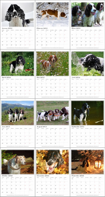 Der Fleckies-Kalender 2012 stellt sich vor Auf dem Foto rechts ist das Layout des Foren-Kalenders 2012 zu sehen. Bei Interesse an einem Springer Spaniel Kalender kann man sich HIER informieren. Wichtig ist zu erwähnen, dass ca ein Drittel des Verkaufspreises von derzeit 9€ in diesem Jahr an die Krambambuli Jagdhundhilfe gehen sollen. Auch ich stehe als Bestellmöglichkeit zur Verfügung. |