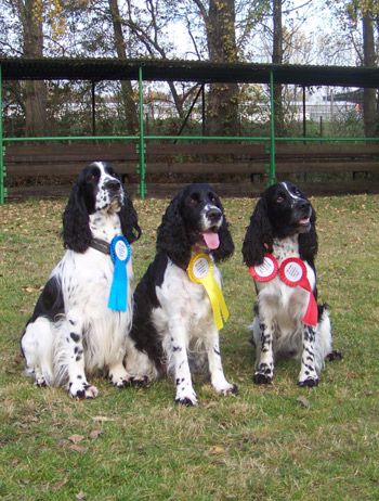 18.06.2011 Vorzügliche Ménage à Trois beim AHC Beckum Drei English Springer Spaniel waren heute gemeldet bei der Obedienceprüfung des AHC Beckum. Alle drei schlossen ab mit einem vorzüglichen Ergebnis und damit der Qualifikation zum Aufstieg. SS Energía erreichte trotz einer Nullrunde mit ihrer Führerin Natalie Bökenkamp 270 Punkte in der Beginnerklasse und den 6. Platz. SS Cougar und Ursel Milke starteten in OI bekamen ebenfalls mit einer Nullrunde 278 Punkte und Platz 4. Auch mein Cinco und ich erreichten den 4. Platz allerdings bei Cincos Debüt in der Beginnerklasse mit 287 Punkten. Nach 7 Wochen Onkeltätigkeit und einer Woche Belastung durch die läufige Undis hätte ich ihm so eine nette Prüfung gar nicht zugetraut. Aber, ein wenig Training für ihn in den letzten sieben Wochen wäre auch nett gewesen.