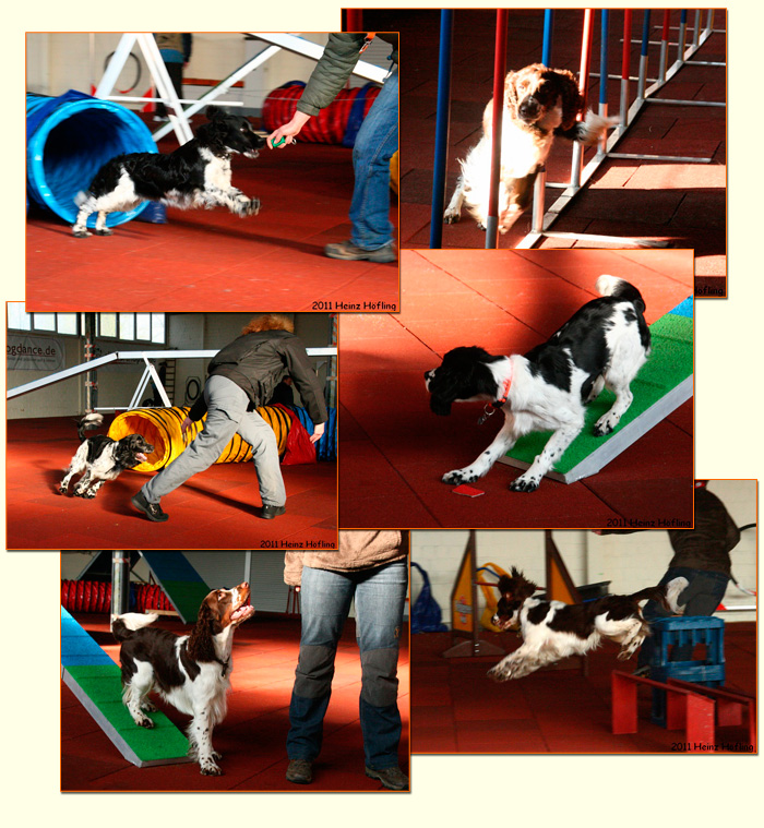 03.11.2011 ohne Fleiss - keinen Preis: Agilityworkshop und anderes Den Feiertagsdienstag mit blendendem Wetter nutzten 8 Sporties zum gemeinsamen Agilitytraining. Das Alter der teilnehmenden Vierbeiner lag zwischen 6 Monaten und 8,5 Jahren und alle kamen wir auf unsere Kosten. Das Training leiteten Ines Hofeditz und Ulrike Simon- vielen Dank dafür. Wir hoffen auf eine Fortschreibung im Frühjahr. Fotos von unserem Agility-Trainingstag gibt es in Heinz Höflings Galerie HIER. und weil Fotos von Spaniels@work einfach gute Laune machen, gibt es jetzt auch noch HIER Fotos vom Dummytrainingstag im Oktober - natürlich ebenfalls von Heinz Höfling. die H-üpfer hatten ihren 6-Monatsgeburtstag und aus diesem Anlass gibt es ein neues Posingfoto von Famechen auf ihrer Seite HIER. Unnötig zu erwähnen aus wessen Kamera dieses Foto stammt ;-) Danke Heinz!