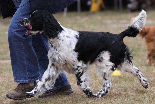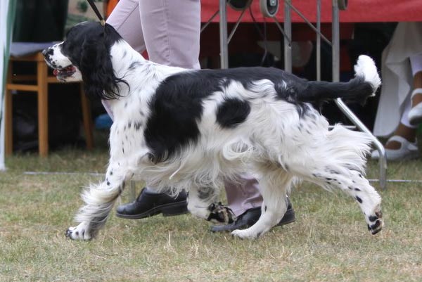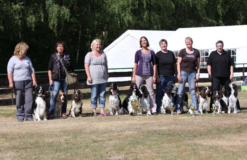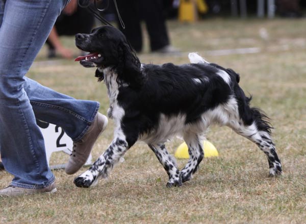 Nach Eddie war mein Cinco an der Reihe. Konkurrenzlos in der Zwischenklasse erhielt er das Vorzüglich und das VDH CAC. Nach der offenen Klasse Rüden ging es für ihn gleich weiter um den besten Rüden. In dieser Konkurrenz hatte Joe Cocker vom Soestbach die Nase vorn und erhielt das Klub CAC. Cinco konnte jedoch noch das Klub CAC Reserve für sich verbuchen. |