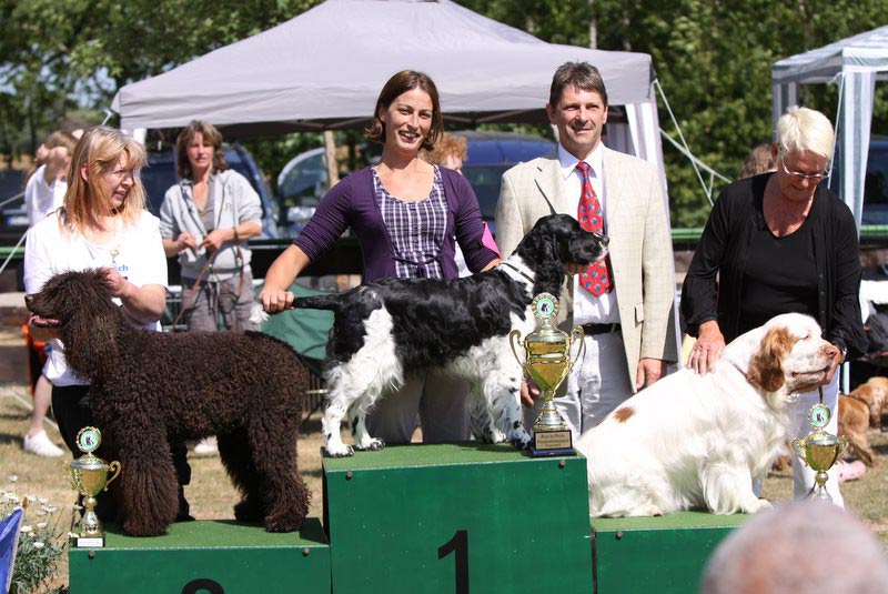 Tja, und meine süße Undis die sich einfach für ihr Leben gern präsentiert freute sich unbändig, nach zwei Jahren endlich mal wieder im Showring zu sein. Sie gewann die offene Klasse Hündinnen bestehend aus 5 Hündinnen mit V1. Wir durften direkt im Ring bleiben für den Lauf ums Klub CAC und auch dies gelang Undis gegen die Siegerinnen der Zwischen- und der Championklasse. Eine weitere Ringrunde sollte die beste Hündin bestimmen, und da Lovis hinter ihrer Mama doch nicht mehr ganz so manierlich lief ging auch das Prädikat beste Hündin an Undis. Wieder durften wir im Ring bleiben und es ging dann um den Rassebesten gegen den Sieger der Rüden. Gentlemanlike liess Hugo Undis den Vortritt: der Richter fand Undis sei die Rassebeste und ich war sprachlos. Für mich war damit der Tag eigentlich schon gelaufen, ich hatte so viel mehr bekommen als erhofft, alleine diese Erfahrung war genug. Die erste Flasche Sekt wurde gemeinschaftlich mit einigen Daumendrückern geleert während die anderen ihren Hunden das Vergnügen eines gemeinsamen Bades gönnten. Die Zeit der Mittagspause und bis zum grossen Showdown wurde uns nicht lang.