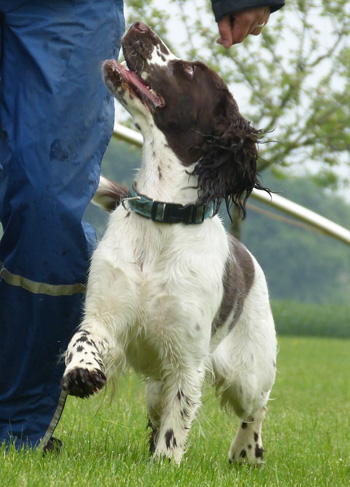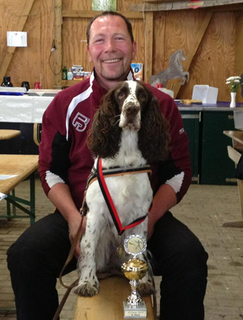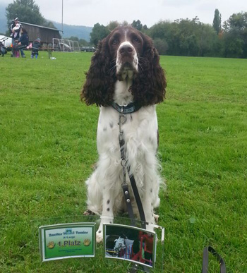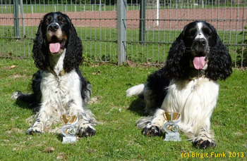 06.05.2013 erst die Arbeit... anstatt mit uns das Jubiläum zu feiern ;-) legten Nicole Conrads und SS Horrible Renfield Gestern beim VSB Berlin die Begleithundprüfung ab. Gerichtet hat Uwe Schulz und Renfield hat sich wohl hervorragend betragen. Einen ausführlichen Bericht findet man auf Nicoles Homepage. Herzlichen Glückwunsch! ... dann das Vergnügen während leider viele Sporties sich auf Turnieren oder Prüfungen herumtrieben, traf sich der vergnügungssüchtige Teil (ca 50 Zweibeiner mit ihren Springern) in Ahlen zum Festival. Der Tag war, wie immer, zu kurz und das Programm spannend. Stefanie Gayk und Tilda gaben uns einen Einblick in die jagdliche Arbeit mit dem Springer, Monika Morlak beschäftigte viele Kreative beim Leinenworkshop und Ulrike Simon hatte eine tolle Ralley ausgearbeitet bei der Teamarbeit und Spaß Hand in Hand gingen unter dem Motto "10 Jahre Sporty Springers". Wetter, Verpflegung und gute Laune waren Top und es hat mir wieder viel Spaß gemacht. Bei der Siegerehrung konnten wir die Gewinner von Ralley und Hunderennen küren und ein schöner Tag ging zu Ende.