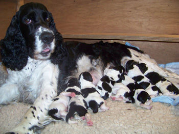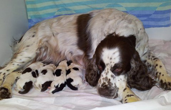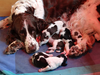11.04.2013 "La Grande Dame" und der A-Wurf Heute ist es soweit, Champagnerstimmung, die Sporties werden 10 Jahre alt. Heute vor zehn Jahren kamen Joy, Anubis, Banjo, Amy, Hope und Easy zur Welt und auch der Kennel Sporty Springers feiert damit sein Jubiläum. Von diesem Tag an wurden 10 Würfe, 65 Welpen unter diesem Zwingernamen ins Zuchtbuch des Jagdspaniel Klub e.V. eingetragen. Das hätte ich damals nicht gedacht. ALLES GUTE ZUM GEBURTSTAG A-WURF!