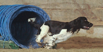 04.03.2013 ein bunter Frühlingsstrauss an Aktivitäten: Sonntag Bei der SRA in Soest bekommt Cinco die Rüden-CACs und Fame muß sich mit ihrem V2 mit Res CACs nur der Rassebesten Hündin geschlagen geben. Ich bin sehr glücklich, dass Fame auch in der Liga der erwachsenen Springer mitmischen kann. Tilda (SS In Sunrays) bekommt ein SG 3 in der Jugendklasse besetzt mit 5 Hündinnen. Gerichtet hat Ulrike Linden. Sandra Kreibich und SS Crazy Blizz starten bei der Winterserie des Agility Team Berlin, gestern ausgerichtet vom HSV Tempelhof. Sandra und Crazy legen einen fehlerfreien schnellen A2 Lauf hin und haben damit den Sieg und die zweite Quali für A3 im Sack. Gerichtet hat Sibylle Vogt. Ein Video des Siegeslaufes hat Sandra uns mitgebracht. |