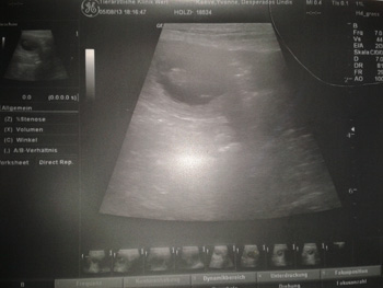05.08.2013 K-rümelchen auf dem Monitor ! Der heutige Trächtigkeitsultraschall gab den Blick frei, auf ein paar wunderschöne schwarz-weiße ;-) kleine K-Wurf-Zwerge. Juchu! Undis und Cinco werden Eltern. |