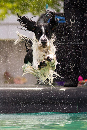 26.08.2013 Fun & Show Bei der IRAS in Leipzig wurden SS Houdinis Lightning und SS Just Do It an beiden Tagen ausgestellt. Houdini erreichte jeweils in der Offenen Klasse das V2 mit VDH CAC res, am Samstag auch das Klub CAC res. Nike erhielt am Samstag SG4 in der Jugendklasse und am Sonntag das V2 mit den J CACs Res. Bei dieser großen Ausstellung wurde erstmalig auch die deutsche Meisterschaft im Dogdiving durchgeführt und Houdini qualifizierte sich für das Finale am Sonntag. Platz 11 war drin mit einer Weite von 4,5m. Das Foto von Houdini im Wettbewerb stammt aus der Kamera von Tina Schäfer. Der Ernst des Lebens- Obedience SS Fraser (Jamie) und SS Jester´s Cap (Capper) konnten am Sonntag bei der Obedienceprüfung in Wesel unter der LR Sabine Richartz viele Punkte und Platzierungen einfahren. Capper erreichte in seinem OI-Debut mit Birgit Funk direkt das Vorzüglich mit Quali für OII trotz einer Nullrunde und kam auf Platz 2 im Starterfeld. Ebenfalls Platz 2 allerdings in der Königsklasse OIII erreichten Jamie und Monika Morlak mit der Wertnote SG. |