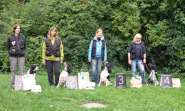 Sechzehn Sporties versammelten sich am gestrigen Sonntag anlässlich des Dummytest der JSpK LG Westfalen, um sich den Aufgaben der Klassen 1 oder 2 zu stellen. Insgesamt waren 27 Hunde angetreten davon zwei "Nicht-Spaniels". Es starteten: SS Anubis, SS Black Gwynniver, SS Bouncing Matisse, SS Bloody Mary, SS Camaro, SS Crazy Blizz, SS Coffee N Cream, SS Flirty Flake, SS Houdinis Lightning, SS Honour&Fame, SS In Sunset, SS In Sunrays, SS In Moondust, SS Jarla Tunes, SS Jam with Moses und SS Just Do It - UNGLAUBLICH! Bei dieser Sporties Flut fielen natürlich auch allerhand gute Ergebnisse ab, hier nur die Platzierten: Es war ein unvergesslicher Tag, dank der Organisation des Tests durch die Dummygruppe LG WeFa unter der Leitung von Heike Diron und durch die beiden engagierten Richterinnen Cordula Wellmann und Cordula Wojahn-Willascheck und eben all den fleissigen Sportiesbesitzern die ihre Hunde anlässlich dieses Dummytests zeigten! Vielen Dank!