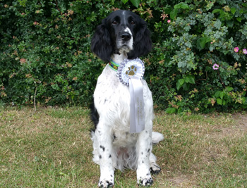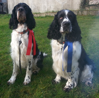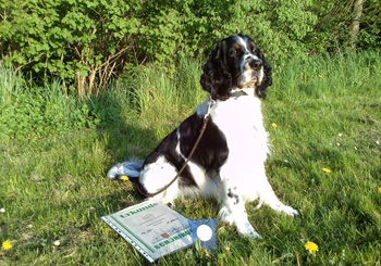 13.04.2015 Miles´Obedience-Debut Sporty Springers Kickstart (Miles-Foto) und Monika Morlak hatten gestern ihr Obedience-Debut bei den Kölcshen Hundefreunden unter der Richterin Susi Tauer. Die rote Schleife zeigt es, die beiden holten sich 224,5 Punkte- Vorzüglich und die dreifarbige Schleife ist für den Klassensieg in der Beginnerklasse. Toll gemacht ihr Beiden!
