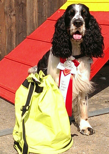 15.06.2015 und noch jemand mit Schleifchen Am gestrigen Sonntag startete SS Black Gwynniver mit Ines Fuchs beim OWL Cup in Hiddenhausen beim Agilityturnier.