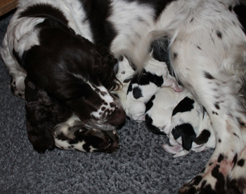 14.06.2015 dem Zwingernamen alle Ehre gemacht In diesem Jahr feiere ich mein 20jähriges Jubiläum im Hundesport. Zu den ersten Agilityturnieren an denen ich damals mit Bonnie teilnahm brauchte ich eine Mitfahrgelegenheit, denn ich hatte noch nicht das passende Alter für den Führerschein ;-) B-Wurf Stardust from Nova am 10.06. hatte ich die Ehre bei der Geburt des aktuellen Cincowurfes zu assistieren. Der B-Wurf im Kennel Stardust from Nova besteht aus 6 Rüden und 2 Hündinnen in den Farben braun- und schwarz-weiß. Man freut sich dort noch über nette Anfragen. |
