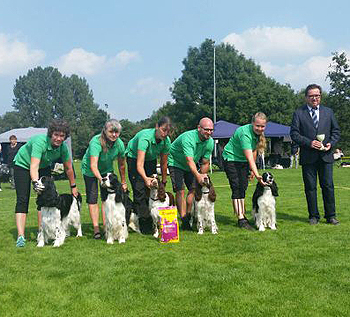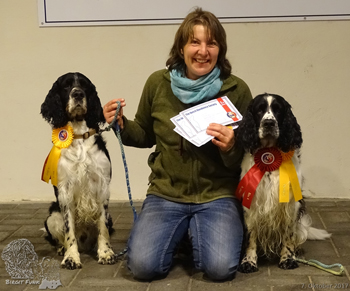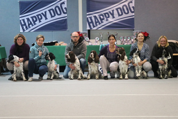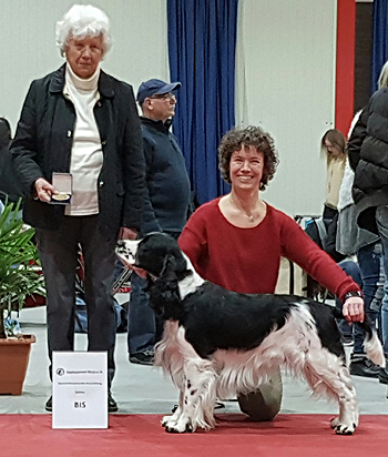27.11.2017 Großbesetzung in Iserlohn Bei der gestrigen SRA Iserlohn waren wir mit 7 Springern im Katalog. Die Babyklasse war ein Geschwisterduell: SS Qaramba vv1 und BIS Baby, SS Quickstep in Black vv1, SS Qall Me Akino vv2. Mein P-Wurf wurde in der Jüngstenklasse gezeigt: SS Pitufo erhielt vv1. Lara Platz 1 BOB-Veteran, Alma V2 mit VDH Res CAC, Skadi V1 mit VDH CAC und Klub CAC Res. HD A2 beim Pfälzer Buben Das HD Ergebnis von SS Ol´Man River (Pelle) ist zurück und lautet wie bei seiner Schwester A2.