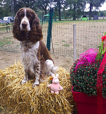 Schwein im Glück Ein Preis-Schwein (Mitte unten im Bild) darf jetzt bei Tilda (SS In Sunrays leben). Tilda startete mit ihrer Führerin Stefanie Gayk heute in der Rally Obedience Klasse 2 des MHM e.V. Mit 96 von 100 möglichen Punkten landete das Team auf Platz 1. |