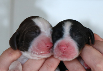 08.04.2020 Wir haben es geschafft! Wir begrüssen unseren U-Wurf mit einem Rüden (braun-weiß) und einer Hündin (schwarz-weiß mit loh) in der Welt. |