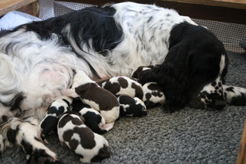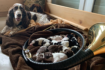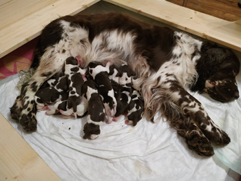 29.12.2020 die V-ichtel sind angekommen! Wir freuen uns mit Sally und Sonic über 4 Jungs und 4 Mädchen in allen Springerfarben. |