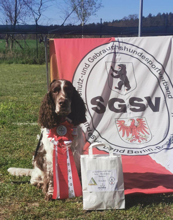 03.04.2023 Junge, Junge Ein lächelndes Züchterherz bescherten mir am vergangenen Wochenende zwei Sporties-Jungs. Tja und der Kracher des Sonntags war einmal mehr SS Trust Me. Frauchen Sandra Kreibich führte ihn zur AZP in St Michaelisdonn. Es war der zweite und damit letztmögliche Versuch für Trust in dieser Prüfung zu bestehen und entsprechend nervös war dann auch mal das erfahrene Frauchen. Sie hätte sich nicht sorgen müssen. In allen Fächern erhielt Trust die Höchstnote 4 und war damit im ersten Preis und Suchensieger. |