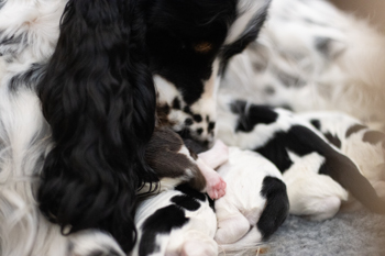 08.04.2023 Willkommen X-linge! Unsere U-Herzchen müssen sich jetzt ihren Geburtstag mit den X-lingen teilen. Gestern brachte Tia ganz souverän 2 Rüden und 4 Hündinnen mit sehr guten Gewichten ins Leben.