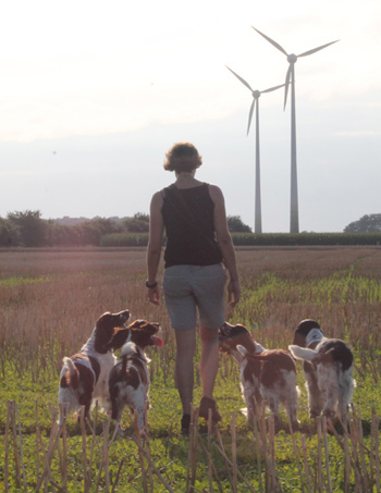 Trotz Kugelbauch ist Fame natürlich weiterhin überall dabei und auch auf dem Spaziergang noch kein bißchen eingeschränkt. Dass sie am Samstag überaus artig bei mir blieb während Lara laut auf der Rehfährte abging wundert mich aber nicht- das hat nichts mit Bauch zu tun, das ist einfach Fame. Gewundert hat mich, dass Skadi sich problemlos abpfeifen liess obwohl sie ihrer Mutter zunächst Nase an Rutenspitze folgte. Der Rückpfiff ist für Skadi scheints einfach witziger als so ein blödes Reh. Was Lara in dem Moment anging, ich dachte ich sehe sie erst in Paderborn wieder, aber ich hatte Glück, ich stand an einem strategisch günstigen Punkt, das Reh wechselte durch eine Hecke ins Korn, wo ich flink genug, nah genug an Lara herankam um sie "abzuschimpfen". Puuuuh!