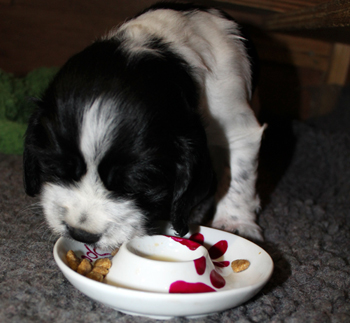 Zu Laras Futterportionen gibt es jetzt einmal täglich Calcium Frubiase, das haben wir immer schon gemacht, davon rücken wir nicht ab, auch wenn hier nur ein kleiner Wurf erwartet wird.