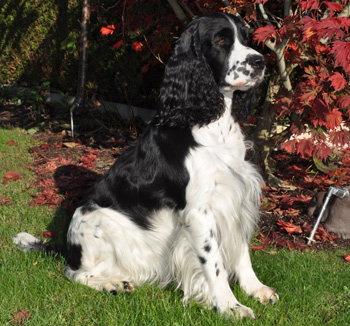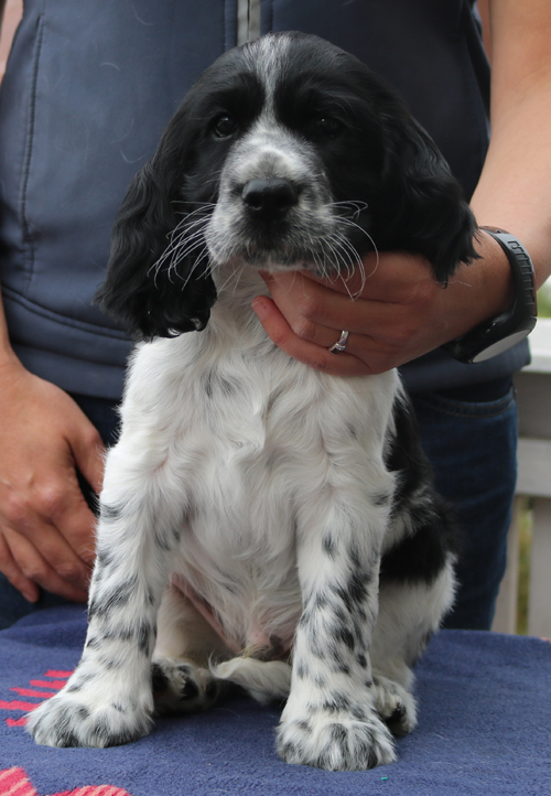 Da er aus einer Verpaarung zweier schwarz-weißer Springer kommt ist es möglich, dass er reinerbig für die schwarz-weiße Fellfarbe ist.