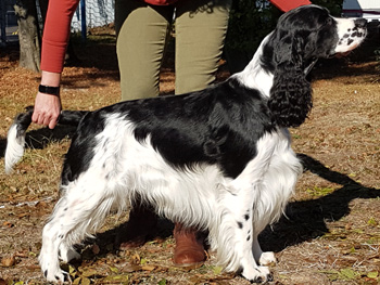 ein in sich stimmiger Rüde mit guten Proportionen, tiefer Brust und moderaten Winkelungen. Sein Haar ist von sehr guter Qualität, so dass es wenig Pflegeaufwand benötigt. Er bewegt sich sehr schwungvoll und freudig im Ring.