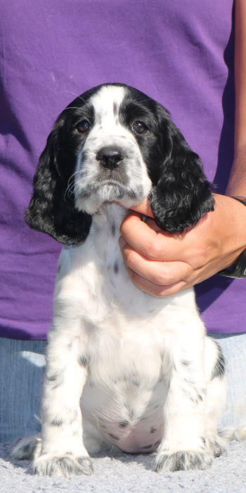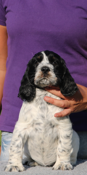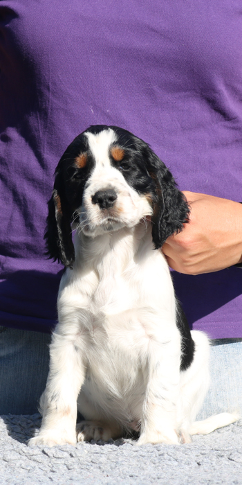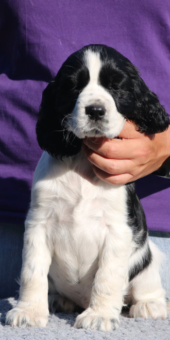 Da er aus einer Verpaarung zweier schwarz-weißer Springer kommt ist es möglich, dass er reinerbig für die schwarz-weiße Fellfarbe ist.