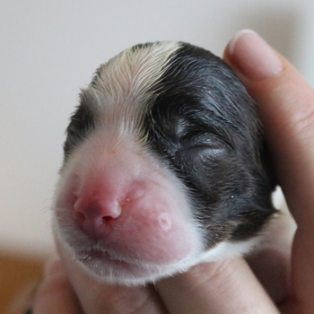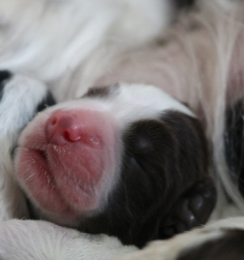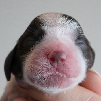 Bei der Wurfabnahme wurden zwei Nabelbrüche, eine Knickrute und ein Canini Engstand gefunden., und die erforderlichen acht Hoden. Damit bin ich doch sehr zufrieden